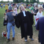 Then, as if by a miracle, at 10 a.m., the official kick-off time, the rain stopped. By 11 a.m., the sun came out and the day was gorgeous and mostly sunny. Someone in the crowd was heard whispering, “Okay, who paid the devil?”