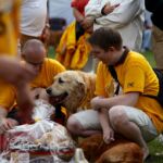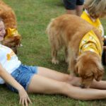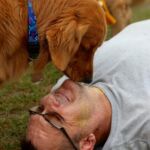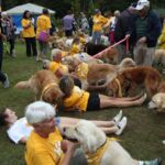 The opening ceremonies were followed by the ‘Rick Lick’. Now you had to be there to see this! It is pretty hard to describe this whacky event in words but we’ll try. Ten brave souls lay on the ground and smeared themselves with peanut butter while 200 plus leashed Goldens looked on in delighted disbelief. A handful of chosen Goldens were unleashed to clean the peanut butter off these brave volunteers. It was hilarious! The clear winner was the crowd of on-lookers.