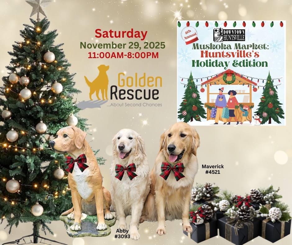 Event Time: 11:00 AM - 8:00 PM Event Location: Muskoka Market - Downtown Huntsville Main StreetGolden Rescue is back at the Annual Muskoka Market: Huntsville’s Holiday Edition!