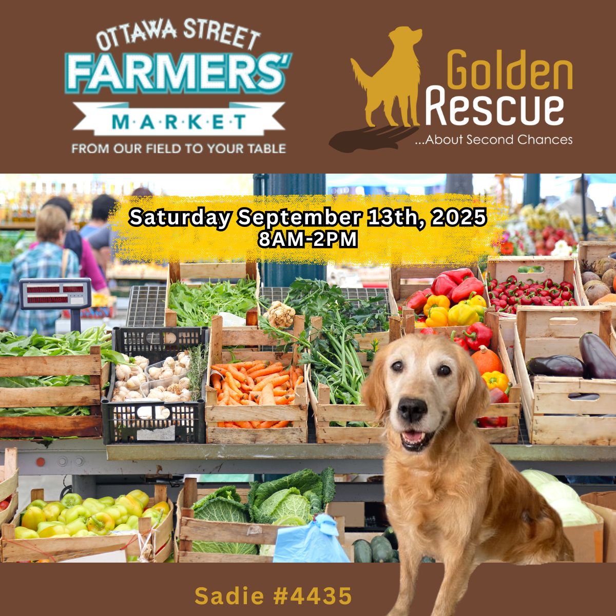 Event Time: 8:00 AM - 2:00 PM Event Location: Ottawa Street Farmers' MarketJoin us for the Ottawa Street Farmer’s Market: Hamilton, Ontario on Saturday, September 13th, 2025 from 8am to 2pm in beautiful Downtown Hamilton. This is a fun, family-friendly and free event for the Community. This amazing event will help Golden Rescue raise funds and generate awareness in the Hamilton area. The Parking lot on Ottawa Street will be closed and lined with Downtown businesses, vendors, and food stalls.