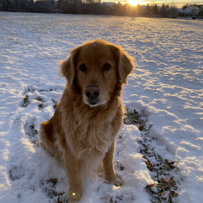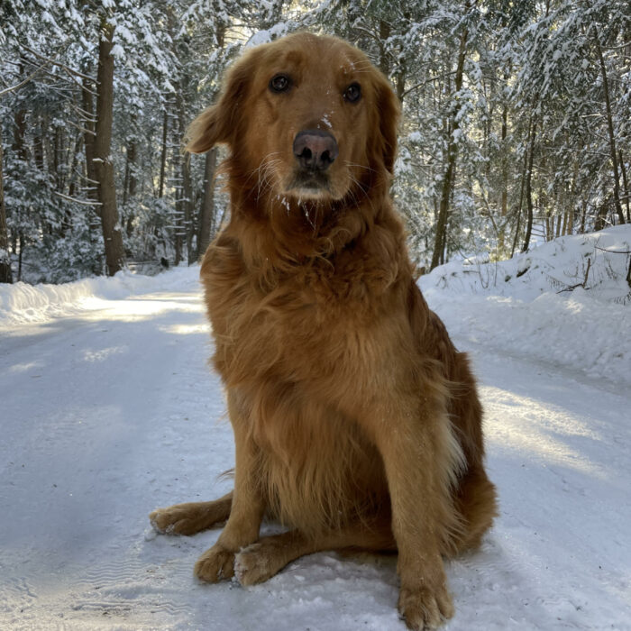 Sky is amazing. We adopted her in 2019 when she was 6 and she is now 12.5 years young. She is such a wonderful loving girl and she loves to snuggle and give lots of kisses. As you can see, she also loves the snow! Linda …