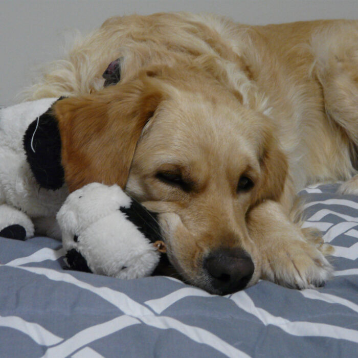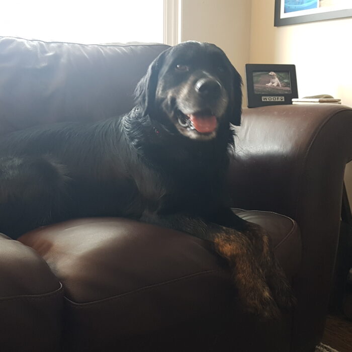 Zoey loves people, loves to play, and loves to chase squirrels. Her first evening with us, she slept at the foot of our bed draped over our feet…and she was instantly comfortable. You could tell she knew she was ‘home’. If one of us has to go to the bathroom in the middle of the night, she jumps onto the vacated spot and won’t move ~ she’s hilarious. We knew immediately that she was meant...