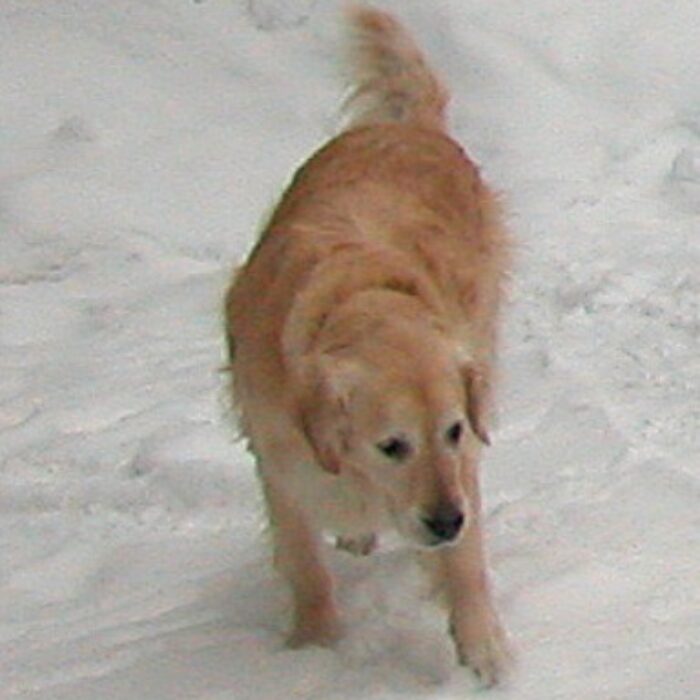 Zoey is a small Golden wonder. What she loses in size, she makes up for in personality. An Olympic cuddler yet independent, this lovely girl will fish all day…madly searching for her catch, tail wagging the whole time. Zoey is the happiest dog we’ve ever met. Her needs are small but her heart is huge. Now she has her forever...