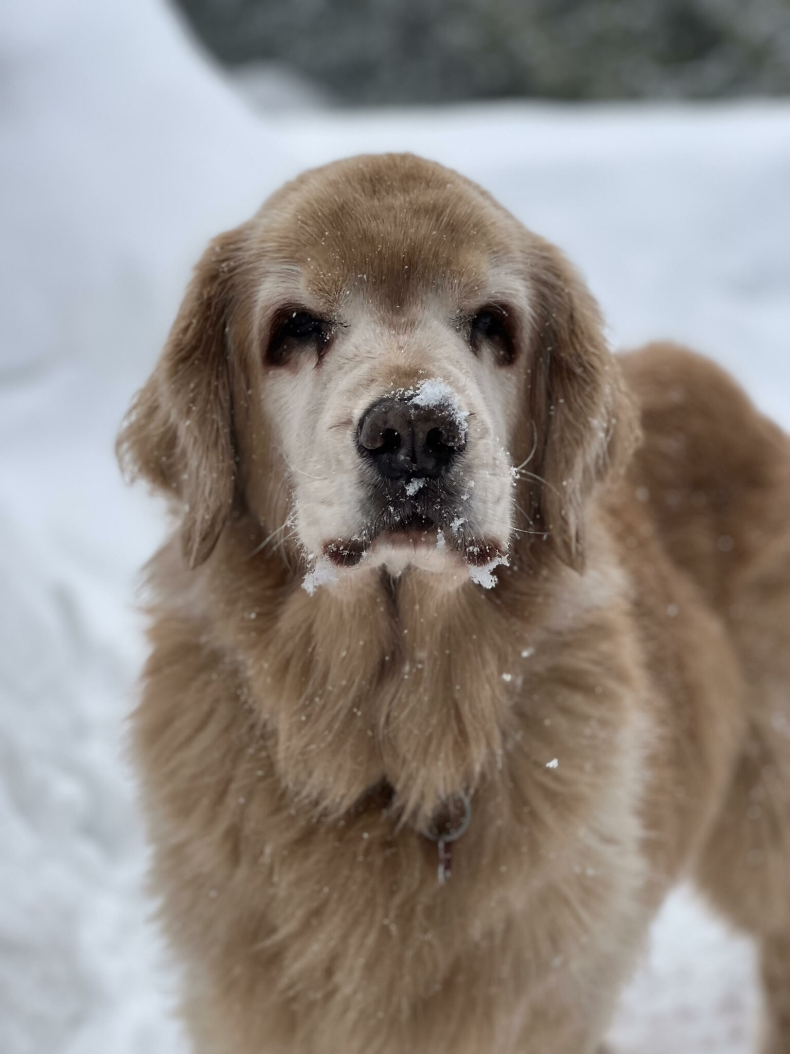Colby is still with us and living his best life. We have just celebrated his 13th birthday. Like us, Colby is getting a little stiff in the joints but he still loves his walks. Sometimes he just tells us ’that’s far enough for today guys’, especially with the snow we had this winter. He had an ACL tear three years ago that needed two surgeries so that was not a great summer for him; however, he recovered and was back to his normal, active self in no time. He is looking forward to this swim season, which is close though he has to make it through the mud season first. Colby is still working with the St. John’s Therapy dog program and has gotten his sister Luna (now 9) into it as well. As a gentle soul, he is great with kids’ programs and his favourite activities are the library reading program, school visits for the little children and special needs kids, and stress buster programs at high schools. He just laps up the attention. We feel privileged to have Colby in our lives. He remains one of the sweetest dogs we have ever had. We are grateful Golden Rescue sent Colby to us.