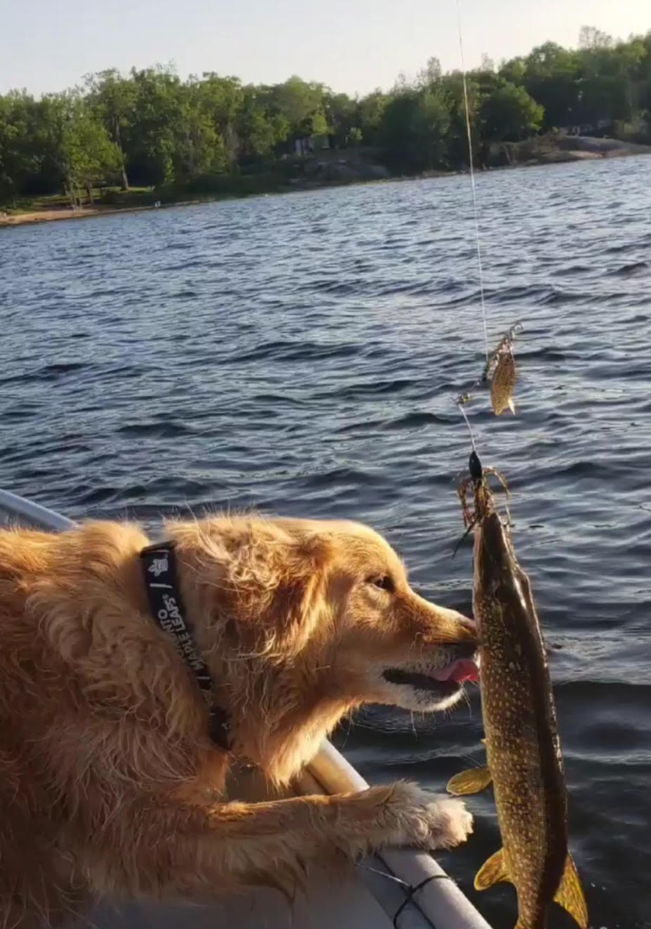 Stitch has been with us for over 8 years. We love him so much and he is a huge part of our family. He loves his daily walks to the park, playing tug of war, his trampoline, and boat rides. His favourite activity is fishing. He loves being outdoors, camping, and long hikes in the forest. When he first came to us, he was afraid of the water; however, he now swims and jumps off the dock. At home he is a big couch potato and loves his belly rubs. We have been over-the-moon happy and lucky to have him as part of our family.