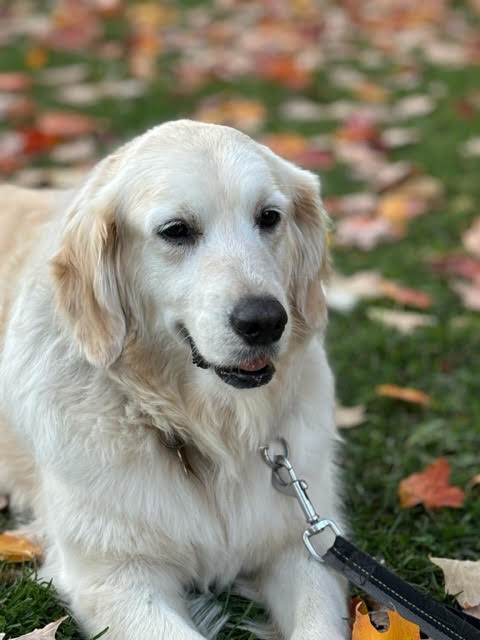We are happy to report that Dallas is doing well. We recently celebrated six years with her. Our family will all say, without a doubt, that Dallas (Dally as we affectionately call her) is the best thing to have happened to all of us. Even non-dog lovers love Dally. She has a gentle demeanour, loves to be cuddled (she thinks she’s a lap dog), joins in on yoga, and senses when someone isn’t well (either physically or emotionally) and comes to your side. She is a natural therapy dog with her calming presence. Dally loves her walks and has also been a driving force in our physical wellness. She loves the local trails but she especially loves water now. The first time she touched water, she ran right out seemingly not knowing what to do. She watched another dog playing and went in very slowly. She is a true Golden now…it’s hard to get her out of any water! She is close to being perfect but she does have a strong prey drive. She’s had her run-ins with a few skunks so she is now ALWAYS on leash on trail walks. It’s hard to remember life without her and we are beyond grateful to GR.