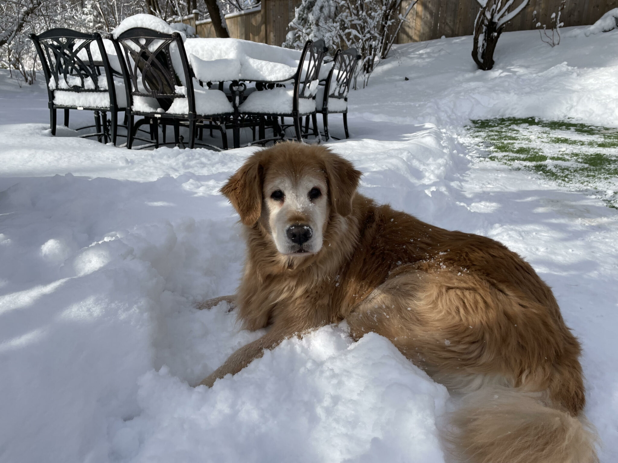 Sky is amazing. We adopted her in 2019 when she was 6 and she is now 12.5 years young. She is such a wonderful loving girl and she loves to snuggle and give lots of kisses. As you can see, she also loves the snow!