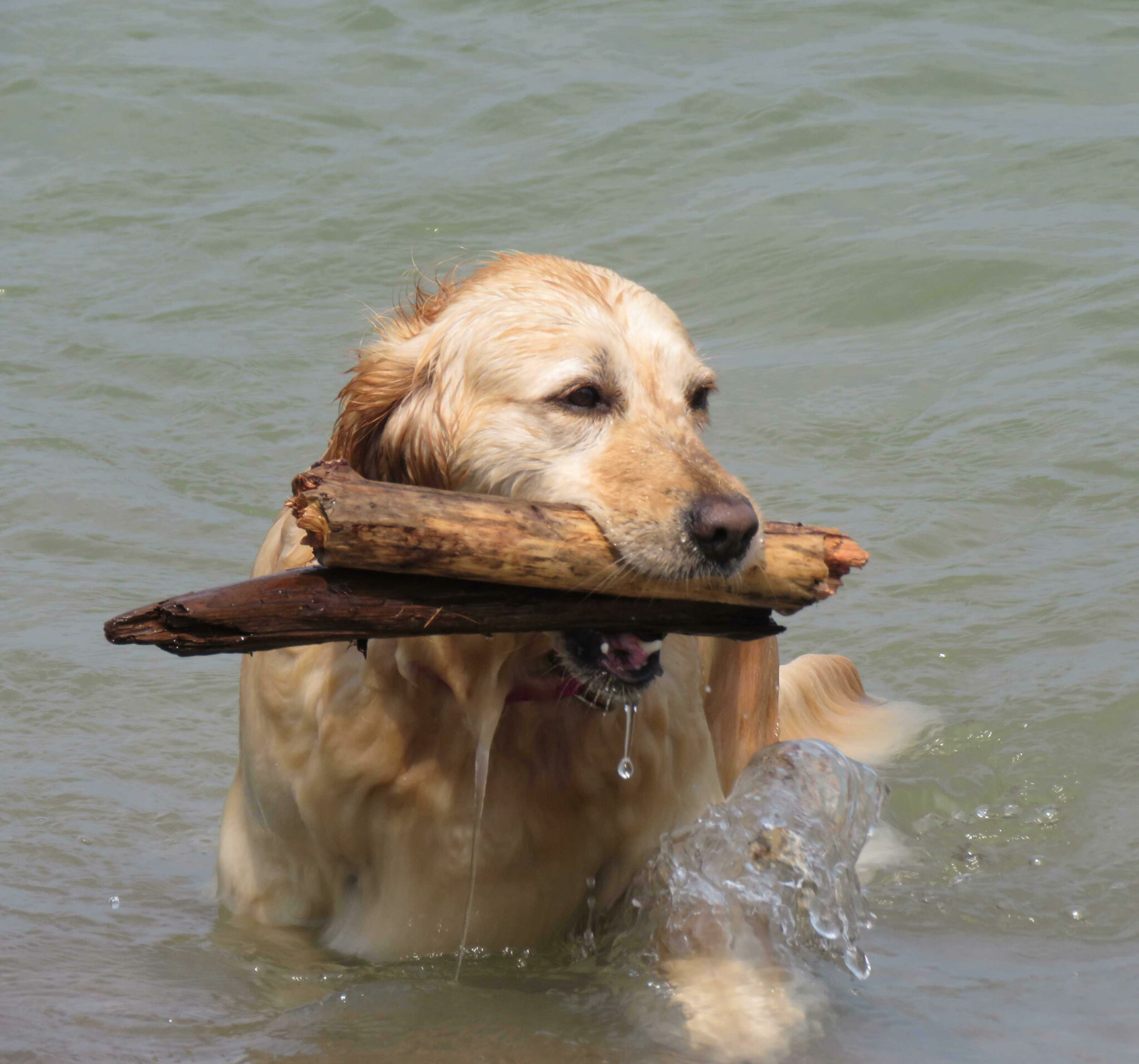 We are happy to say Oni is a happy, well-adjusted girl who is loved by everyone she meets. She loves attention and is very calm. She enjoys long walks, swimming, riding in boats and kayaks, and hanging out with her friends. Unfortunately, Oni has always had a minor intermittent limp which has progressed to require medical help. She is responding to treatment and we hope she will soon be back to her normal self. Even through this difficulty, she has always been calm and happy. We were fortunate to be chosen to adopt her.