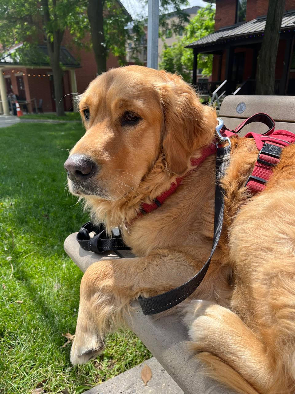 Things with Auggie have been great. Everyone said he would calm down at some point but we see no signs of that. He is a bundle of fun and energy and he keeps us on the go. Health-wise, we are still monitoring his hips and his one good eye continues to be stable. You’d never know he was blind in one eye other than being a little clumsier than your average pup. Auggie joined our family through Golden Rescue in 2022 and we couldn’t be more grateful. Originally from Egypt, he made the journey to Canada and has been embracing every adventure since. His energy and loving personality bring so much joy to our lives. He adores playing with the neighborhood dogs and meeting anyone who will say hello on our walks. Some of his favourite adventures include trips to Nova Scotia where he can run on the beach and camping trips where he can swim and play all day. We can’t imagine life without him and we’re so thankful to Golden Rescue for bringing this sweet, adventurous boy into our lives.