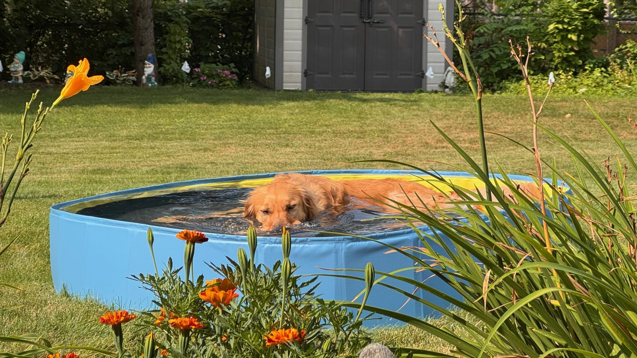 SuperDooperCooper is our fifth Golden from GR. He came with a long rap sheet ~11 of 10 on the energy scale, very aggressive with other dogs, 12 out of 10 on prey drive. But the first time we met, he ran right over and planted a big kiss so we were hooked. High energy…no problem. I’m high energy so it was a match made in heaven. Aggression with other dogs…we will never know what happened in his life to cause it but we’ve come up with a plan to deal with it. He is so easily distracted by food so all we have to do is wave a liver bite in front of him and he forgets why he was mad. Sniffing starts, tail starts wagging, and all is good. Once he’s made friends, he remembers going forward. As for his prey drive, it’s better not to be a rabbit or squirrel; however, we’re happy to report that he has the utmost respect for our invisible fence. Whoever gave up Cooper lost an absolute gem. He is the sweetest animal I have ever known and what he adds to our home cannot be measured.