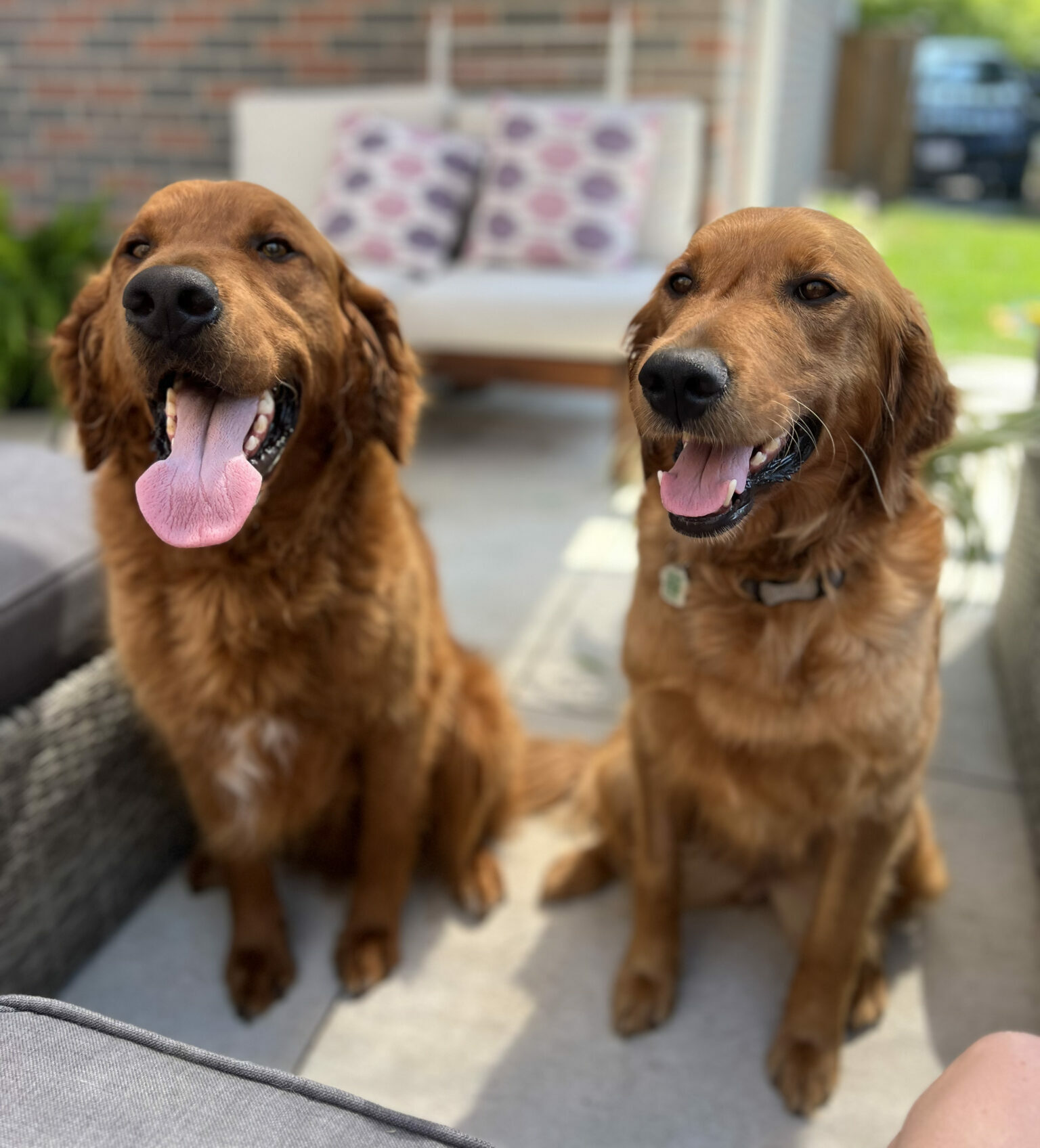Hi everyone, my name is Max and this is my sister, Maple. We are three years old and have been together from the very beginning. We love each other and are what you humans call a ‘bonded pair’. I’m the darker of the two of us and both of us are easy-going. I have a loving sister and she’s the perfect Golden in my eyes. We are both cuddle bunnies although I tend to want to cuddle in the evenings, whereas Maple wants affection and attention any time, day or night. Both of us love our walks; however, we’re not super high energy so just hanging out together is fine with us. We both love everyone and everything really ~ all people, other dogs, and cats too but mostly we love our new and wonderful life. Our amazing foster family has been so good to us and tells us we’re ready to find our forever family. Boy, how exciting is that. The doc says were both healthy and here’s what our foster dad says about us: “Max and Maple are true Velcro Goldens, so a home that doesn’t mind a couple of shadows would be great. Their new family needs to include them in everything (camping, hiking, beach, car rides, etc.). The home doesn’t have to be super active but they do love their walks.” Yes, you hit the nail on the head but not on our head. Ouch, that would hurt! (ha-ha)