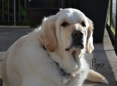 Hi everybody…my name is Piper and this is my sister Bella. We are two, 3-year-old sisters who have been together since birth. When we first met the good people at GR, we were very dirty and overweight. It didn’t take long, thanks to our amazing foster family, to get cleaned up and on a diet. We are both losing weight but still have a way to go. We are big girls and the vet thinks we might have some Pyrenees in us (which would explain our size) but we sure look and act like Goldens. We are both big cuddlers and we love people. We also love other dogs and cats are probably okay with us as well. We are very adaptable so we can easily be couch potatoes or more active if that’s what you want. We love to please so just tell us what you want and we’ll figure it out.