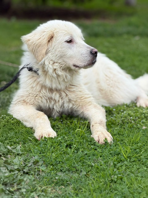 Hi everybody…my name is Billie and I’m a one-year-old female. I am a blonde Golden, as you can see, and I’m a very cuddly, fluffy girl. I am very good-natured and I love children and other dogs…grown-ups too, of course (tee-hee). I am not cat tested so I don’t think we should chance that. I am a first-class cuddler so if you like that, I might just be your girl. When you cuddle me, I immediately turn over to show you my belly because I loooove belly rubs. I am learning your human ways, but I have to admit I’m having trouble getting the hang of that leash thing, so be a little patient please. I am very easy-going, good-natured, and affectionate. I don’t like causing trouble and I don’t take up much room. If you’d like to meet, the good people at GR can sort that out. Hope to meet you soon!
